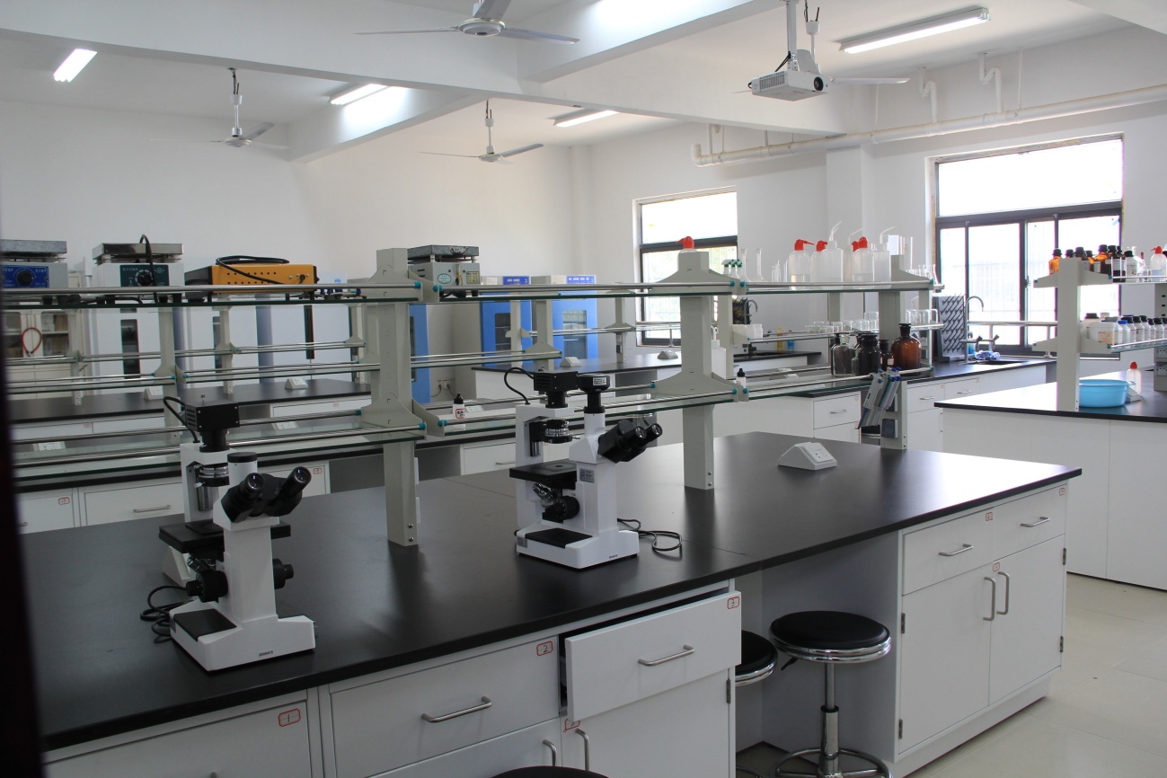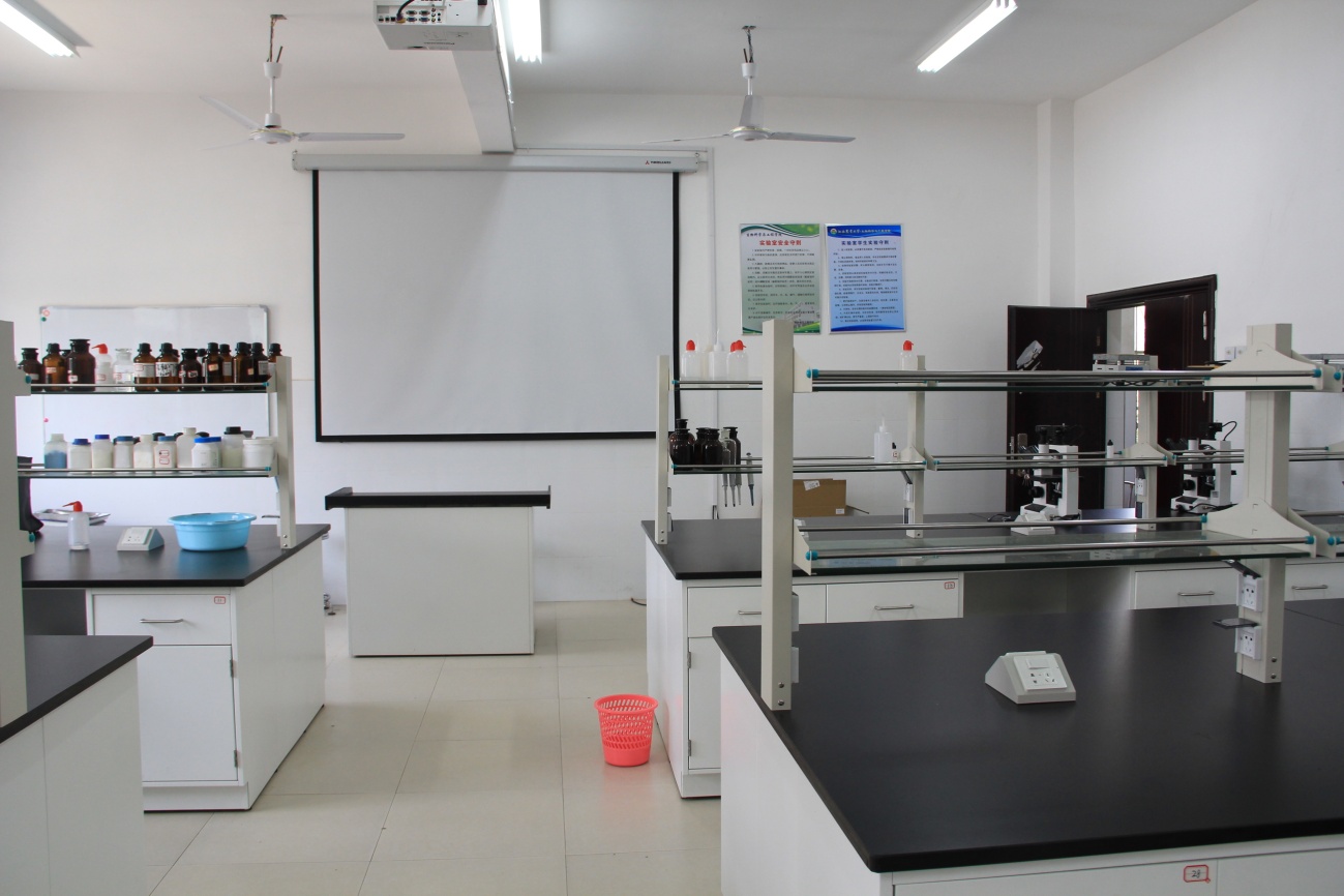 应用生物技术实训基地2018年投入使用,共有三个教室,用于生物技术专业实验,基本仪器有制冰机、制水机、PCR仪、卧式灭菌锅、显微镜、摇床、自动收集器、高速冷冻离心机、超净工作台、冰箱、培养箱、切片机、电泳仪、凝胶成像系统等,基本能满足生物技术相关的各个实验要求。