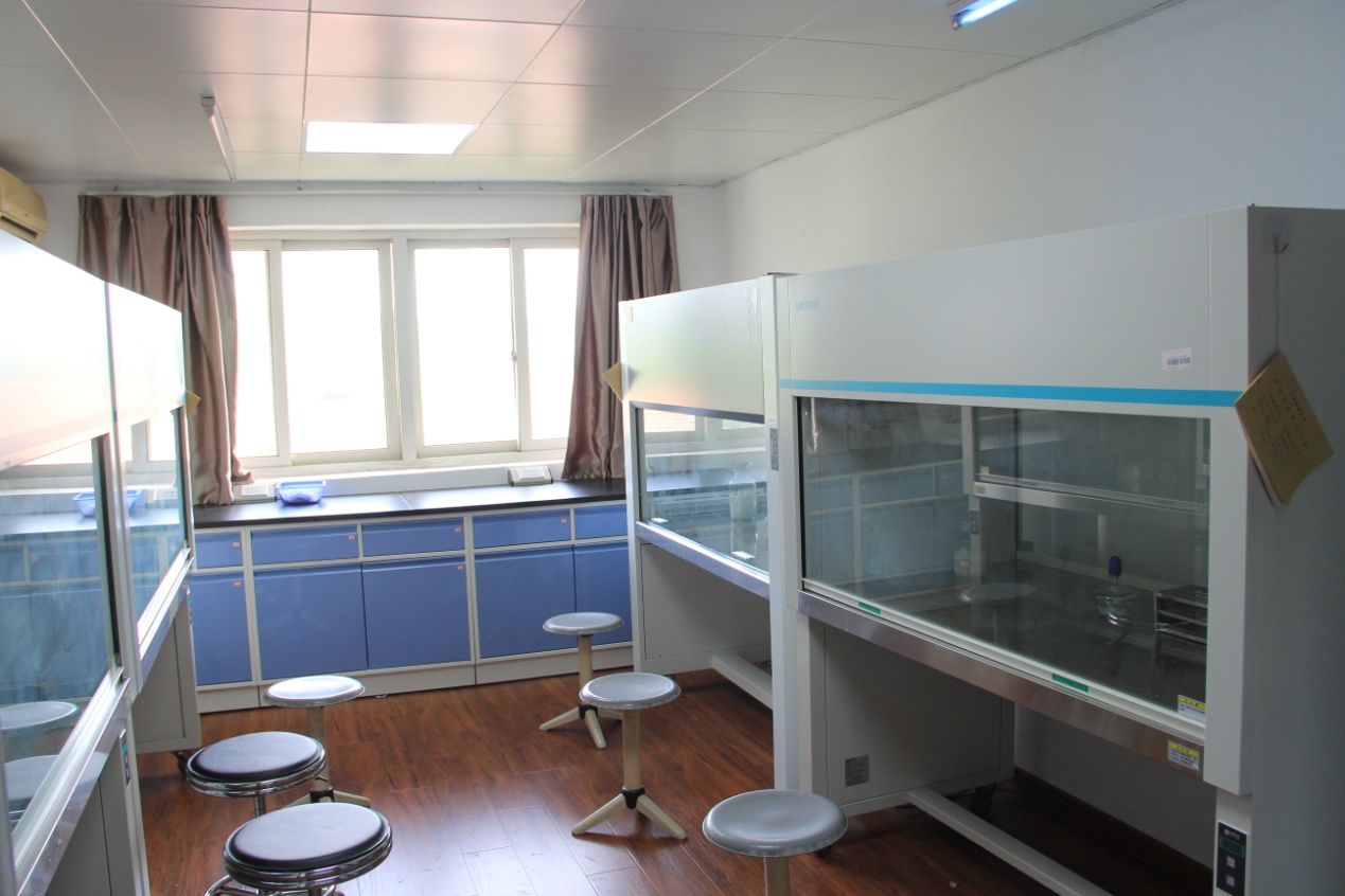 本科教学实验室约750 m2,主要用于生物工程、生物技术和制药工程专业的基础实验教学和部分实习教学。近5年来公司先后投入500万元用于实验室的改造和设备购置,公司全部实验室进行优化、改造、调整,合理分配各实验室的用途,形成药品室、预备室、灭菌室、接种室、培养室、发酵小试实验室、员工实验操作实验室和大型贵重仪器室等的合理布局,更好地满足不同专业员工的实验需求。为了保证员工在实验过程中的安全,实验中心在所有实验室配备了灭火器、沙桶和灭火毯等消防安全设施,同时配备了专用的废液收集桶以及急救药箱,可保障中心实践教学的安全进行。