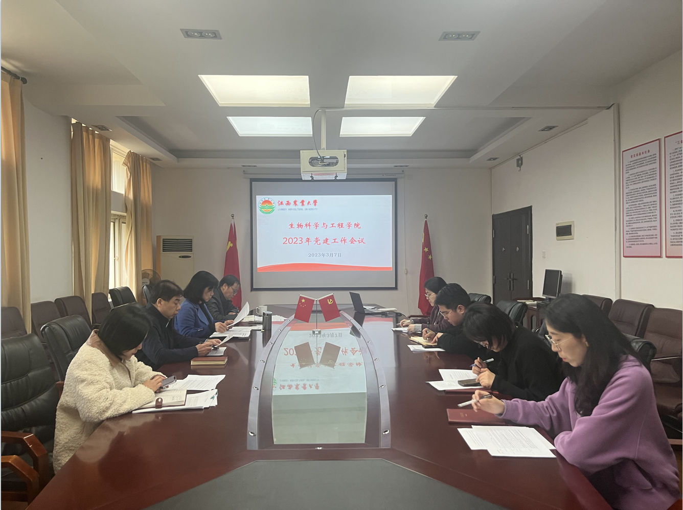 会议开始先进行了政治理论集中学习吴晓玉书记就党的二十届二中全会精神以及全国两会精神进行宣讲。她强调要强化政治理论学习,牢记初心使命,锐意进取、顽强拼搏,潜心教书育人,扎实推进中国式现代化建设,为实现党的二十大确定的目标任务而共同奋斗