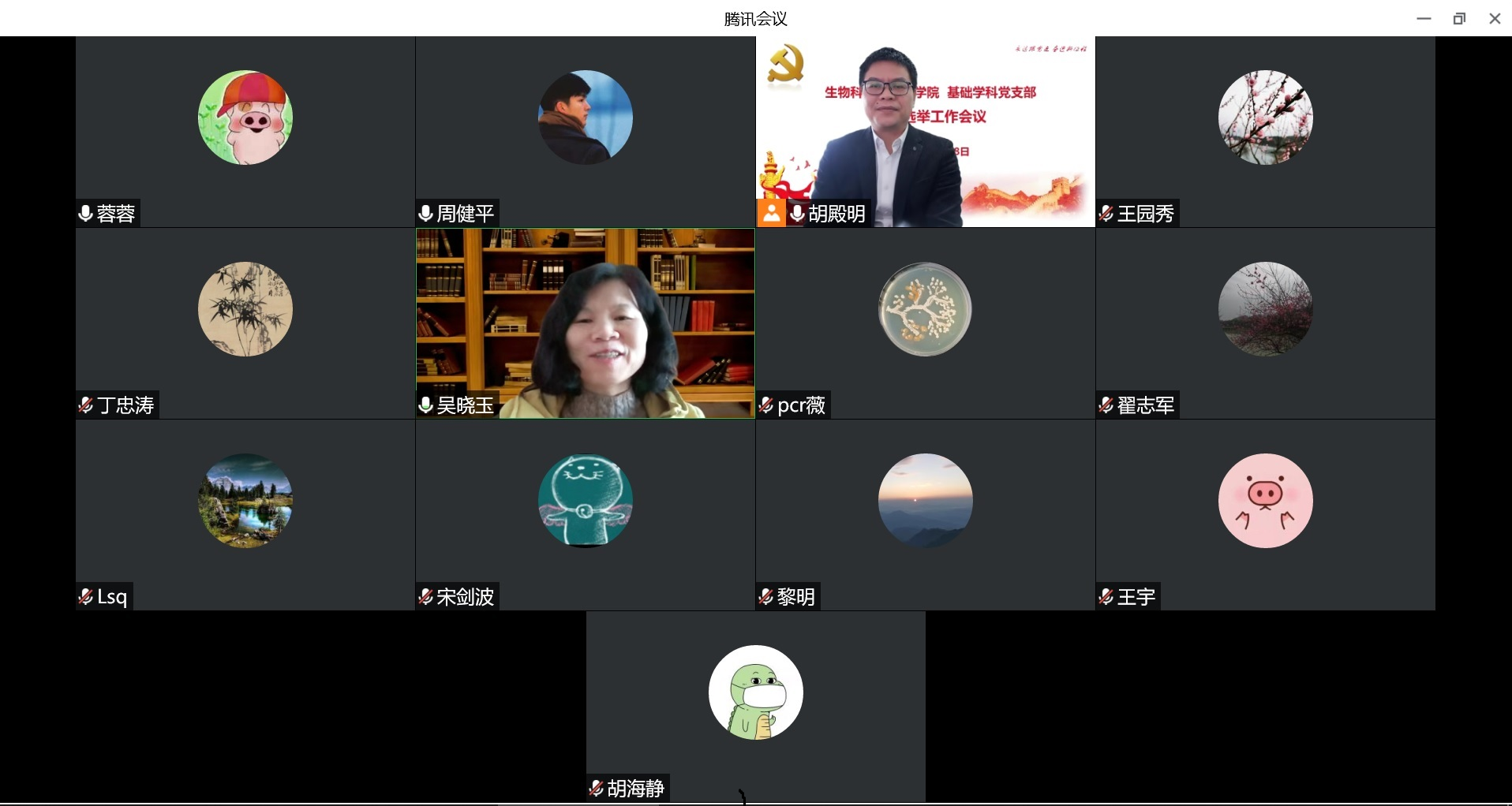 为加强党支部规范化建设,根据《中国共产党章程》和《中国共产党支部工作条例(试行)》等有关要求,结合公司工作部署及公司党委批示,12月18日上午,公司基础学科党支部线上召开换届选举大会,本次大会由支部书记胡殿明主持,公司党委书记吴晓玉出席,支部全体党员参加。