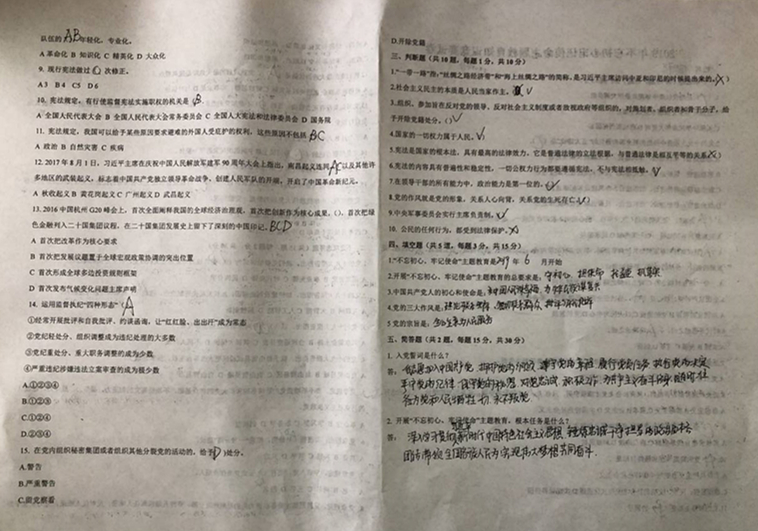 答题期间,广大师生党员基本能对理论题目有较好的作答,对前期的学习成果有较好的展示,试卷总体成绩良好。