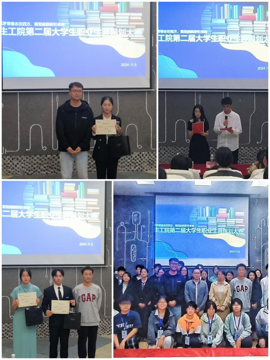 为贯彻落实党中央、国务院决策部署,落实《国务院关于印发“十四五”就业促进规划的通知》精神,加强公司生涯教育和就业指导,增强老员工生涯规划意识,提高老员工职业规划能力和就业能力。11月5日晚,生工院第二届职业生涯规划大赛在生物工程楼一楼阶梯教室顺利举行。本次比赛邀请了国土院赵晨刚、工公司胡伟和院学工办赵荣、陈寅聪四位老师担任评委,百余名员工代表现场观摩了比赛。经激烈角逐,惟义生工2201班齐语婷获一等奖,生技2401班符佳宁、生工2201班付乐洋获二等奖,生工2302班廖子珺、惟义生工2201班黄君瑶、惟义生工2301班王丹慧获三等奖。