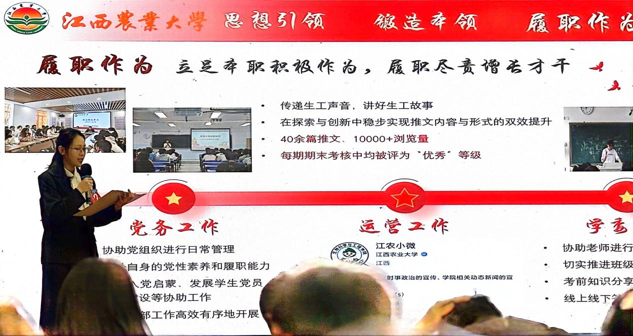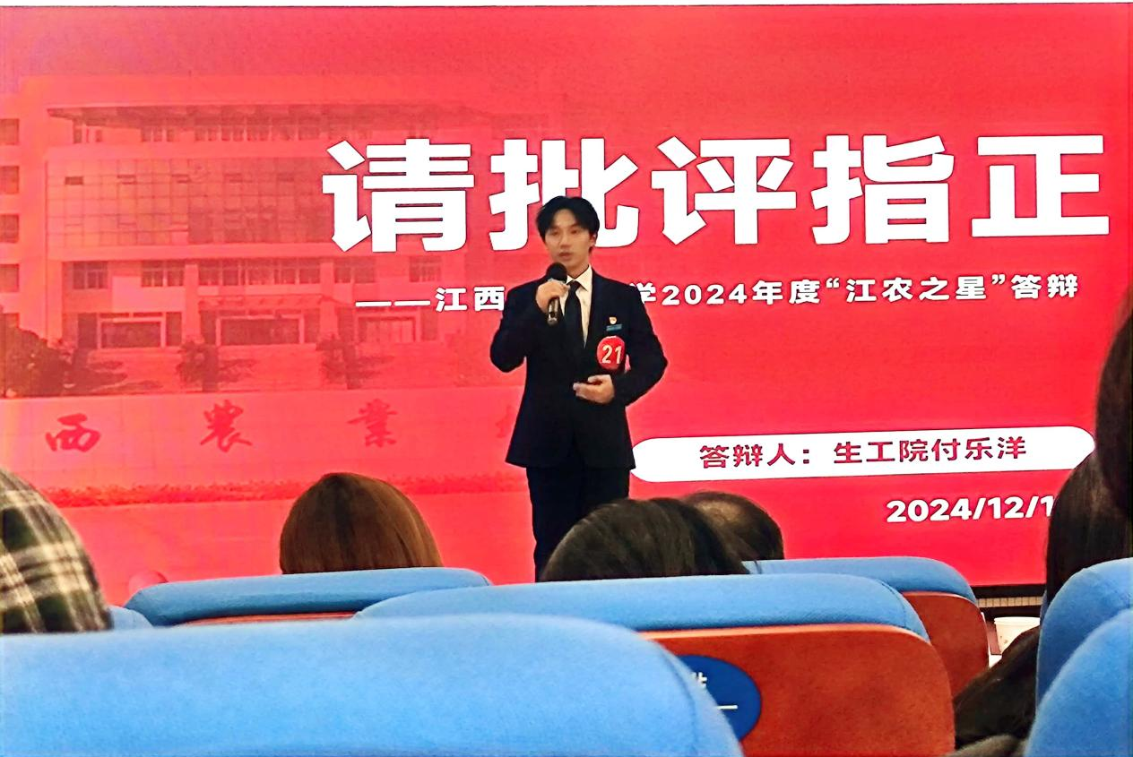 据悉,“江农之星”年度人物评选是深入挖掘先进典型,集中展现公司学子风貌,发挥榜样示范引领作用,激励员工奋发向上的校园评选活动。本次评选历经公司推荐、专家评审、公众投票、现场展示四个环节,经过初评后共21位同学入围全校答辩,最终产生“‘江农之星’年度人物”10名,“‘江农之星’年度人物提名奖”10名。