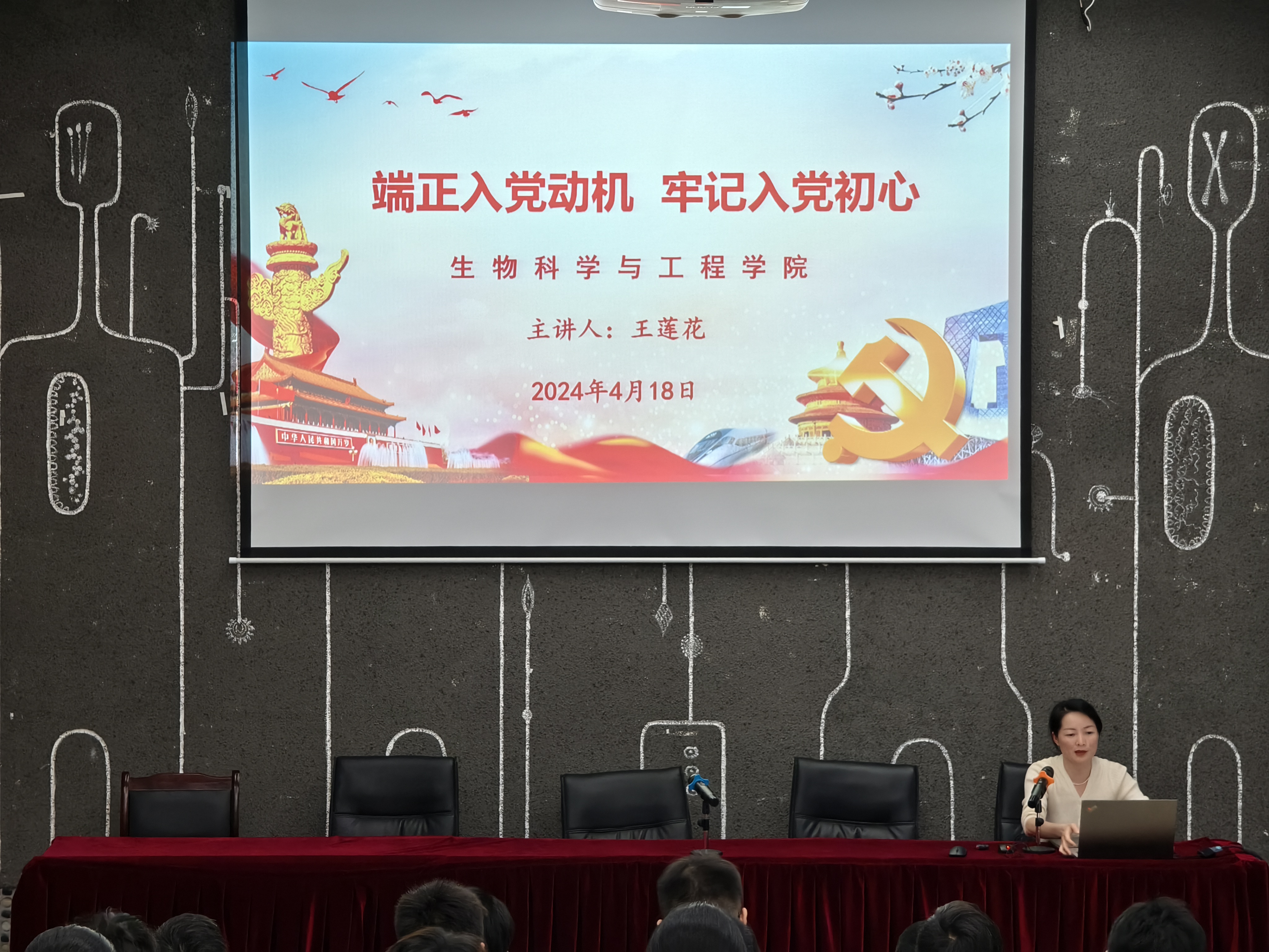 4月18日晚,公司2024年上半年入党积极分子培训班线下开班仪式在生工楼一阶报告厅举行,公司党委副书记王莲花出席并进行党课宣讲,各员工党支部书记、本批入党积极分子共近百人参加会议。