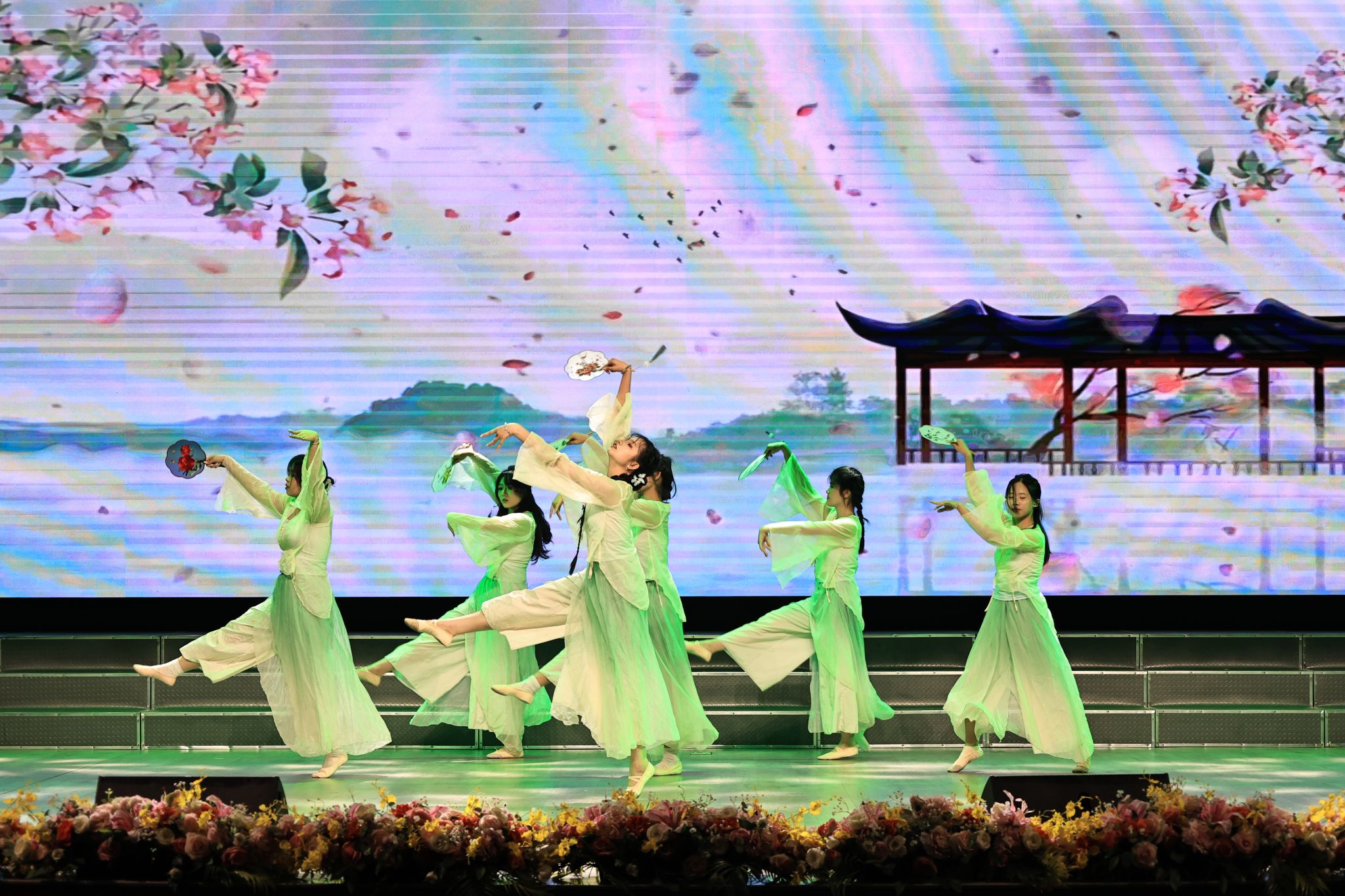 青春绽放,筑梦远航。晚会节目精彩纷呈,以多元艺术形式演绎青春华章。爵士舞《Unforgiven》用动感节奏唤醒校园记忆;流行金曲联唱《昨日青空》、《爱的回归线》唱响同窗深情。古筝《兰亭序》与民族舞巧妙融合,展现传统文化新魅力;小品《老同学显摆大会》以幽默方式重温校园趣事;特别设置的抽奖环节,将满载祝福的公司文创礼品赠予学子,现场洋溢着温馨与感动。
