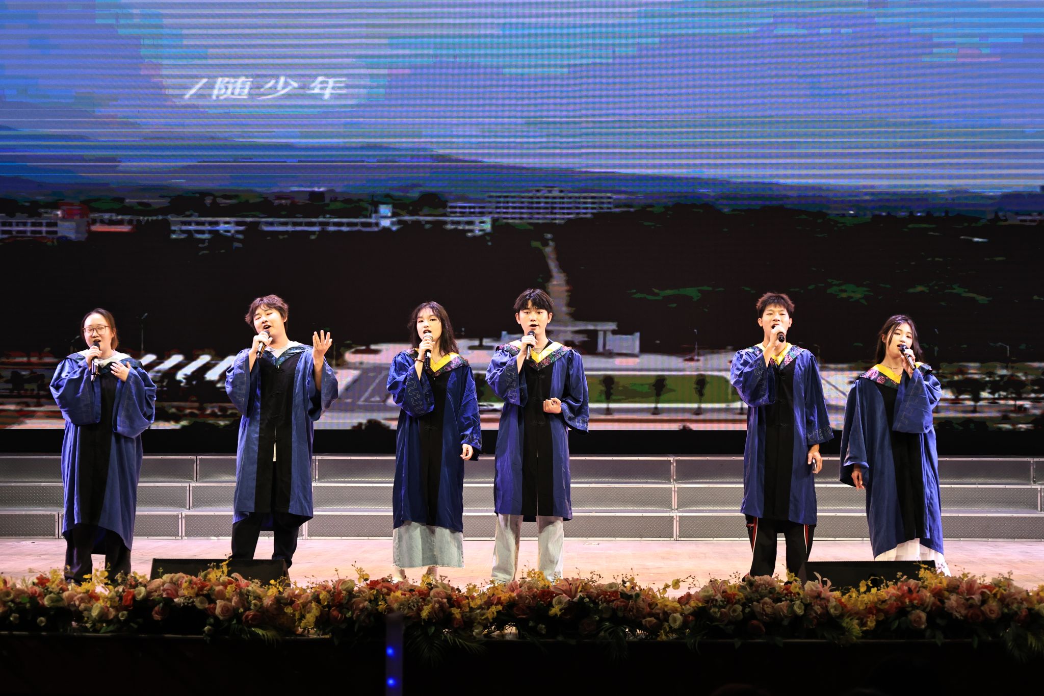 殷切嘱托,勇担使命。毕业生晚会现场,经理王义华致辞。他深情回顾了毕业生们在校期间的成长与收获,高度赞扬了同学们在学术科研、社会实践、文体活动等领域的突出表现,并殷切寄语:“希望你们始终秉持‘见微知著、求真致和'的院训,以严谨治学的态度和创新求实的精神,在各自领域绽放光彩。母校永远以你们为荣,期待你们捷报频传!”