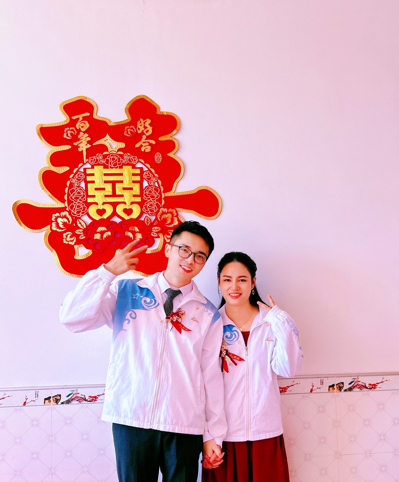 母校蜜月续良缘:运动会期间,生工1402班毛贵东、黎亿爱二位员工重返母校度蜜月,一方面为了给员工们加油,一方面二人一起漫步校园,回忆曾经大学的美好点滴。2014年,二人在美丽农大相识,随后相知、相爱、相伴和一起成长,近日刚举行婚礼,是班级里第一对喜结连理的班对,是大公司园美好爱情的亲历人,是校服走向婚纱的实践者。蜜月期间,二位员工专门从武汉重返母校,见老师和同学,亲自送上喜糖,还前往现场给员工组比赛加油,这是公司员工铭记师恩、珍惜同窗情谊的真实体现,是员工感怀青春、追忆美好时光的内心表达。班主任王飞老师代表班级给二位新人送上了寓意百年好合的鲜花和美好祝福,师生情谊再一次得到了升华。