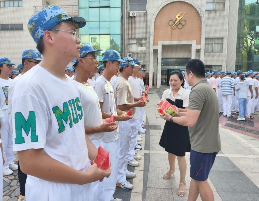 公司关心表慰问。为了缓解军训疲惫、丰富军训生活,同时让新生感受到公司的关怀,公司党总支书记范丽琴携学工办全体教师深入训练场,为新生送上清甜可口的西瓜,为教官送上润喉片,与新生一起唱歌,一起打靶,并亲自带生病的员工就医。