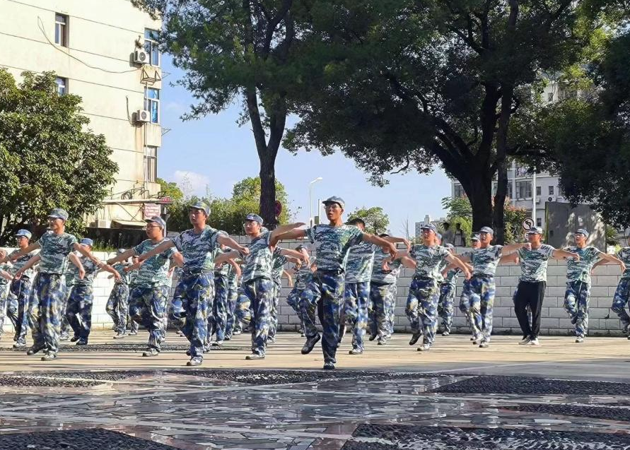 挥洒汗水学技能。军训期间,同学们不畏酷暑,挥洒着汗水反反复复地进行拔军姿、走方阵、喊口号、唱军歌的训练。站立时挺拔有气势,行走时步伐铿锵有力,军体拳强劲有力又快又稳。同学们全神贯注,积极参训,不怕苦不怕累,展现出了良好的军人风采。