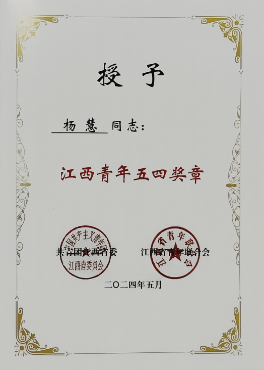 日前,第27届“江西青年五四奖章”评选结果揭晓,我院杨慧研究员被授予“江西青年五四奖章”。