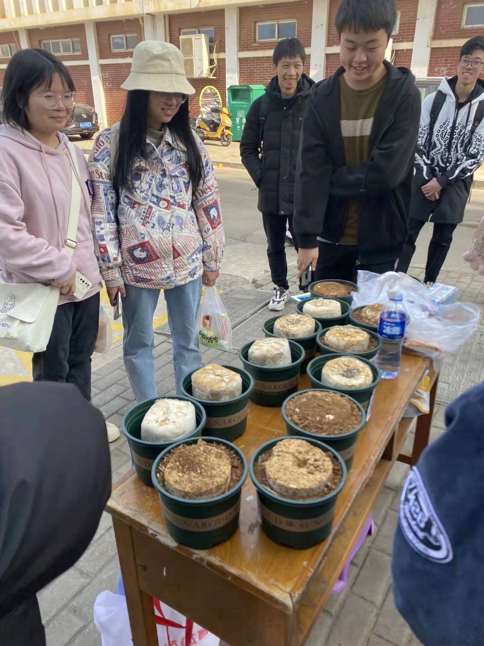 为激发同学们对食用菌的研究,体验自己亲手种植蘑菇的乐趣,生工院学子在老员工服务中心门口成功举办了“佳蕈出何许”食用菌栽培技术宣传推广活动。