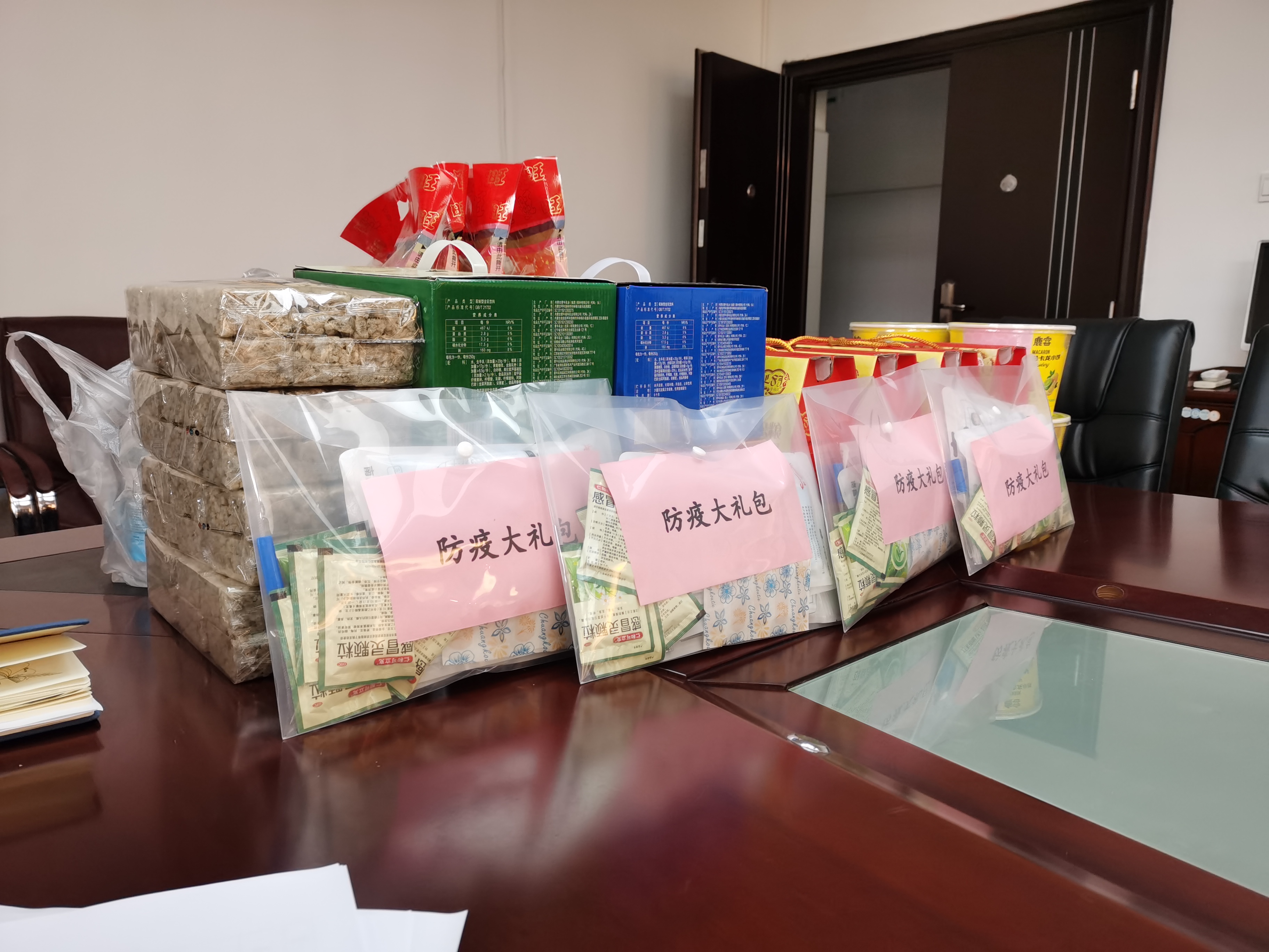 最后,院学工办代表公司向留校员工赠送防疫大礼包及春节慰问礼包。
