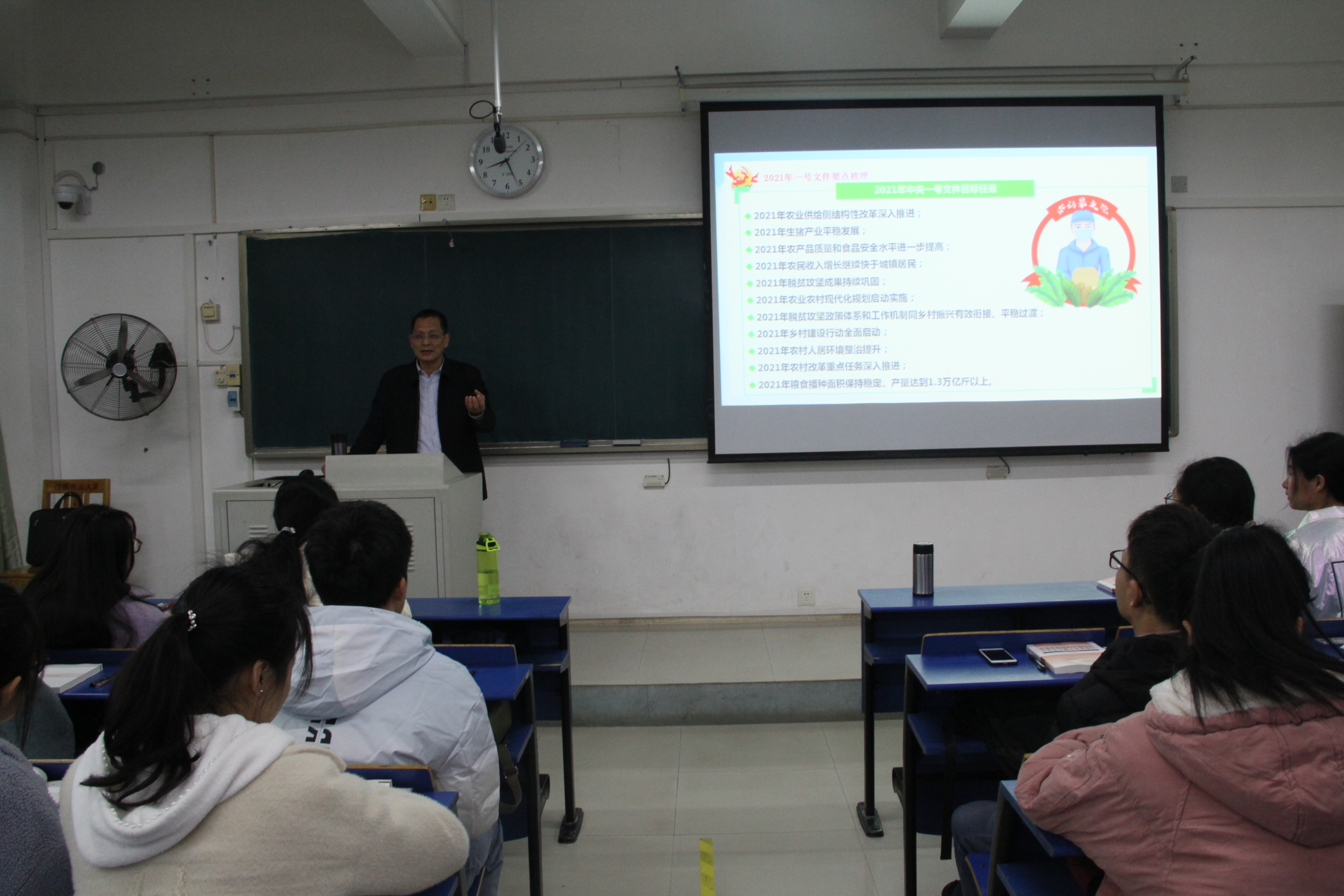3月8日上午,2021年新学期伊始,校领导贺浩华副董事长走上讲台、亲自给公司19级生物技术专业3个班的本科生讲授开学第一天的第一堂课“2021年中央一号文件解读”,生工公司党委书记廖明详,经理吴晓玉,副经理张庆华以及教务处和政治公司等领导参加了学习。