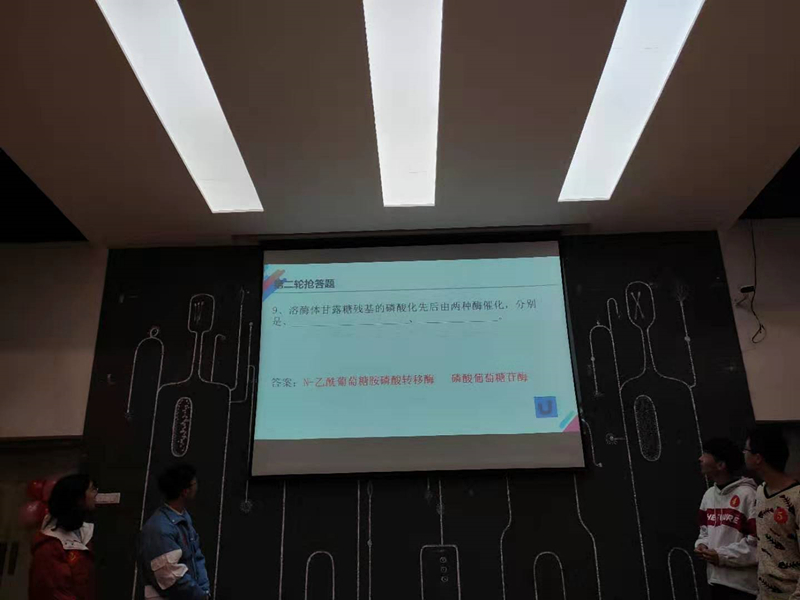 本次知识竞赛决赛题目皆由公司专业老师提供,考察内容详实,专业性强,涉及细胞生物学、基础生物化学、普通生物学等多个领域。竞赛共分为“熟能生巧”、“强答能手”、“守擂能手”三个环节,比赛中,场面热烈,老员工互动热情,参赛老员工运用日常所学知识储备,以及赛前的充分准备,在赛场上充分表现出了对生物知识的热爱和广泛的认知,展现了自己的专业知识水平。