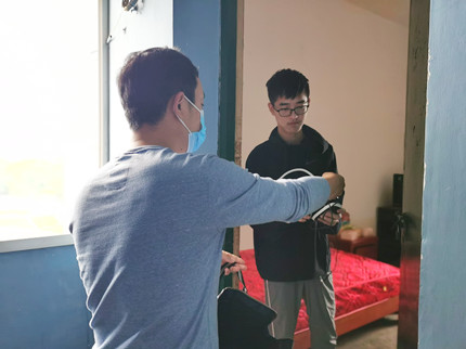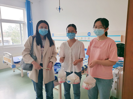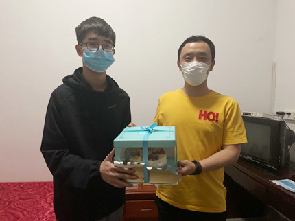5月25日晚,学工处刘康老师、卜琰婷老师,公司员工党支部书记任青达和学工办老师一起看望接受隔离观察的员工,向他们表达公司的关心和问候。当天恰好是生工1802班李鸿儒同学的生日,学工办特意为其送上了生日蛋糕和诚挚祝福。看到隔离房间光线比较昏暗,看书学习有所不便时,学工办又为其送上台灯,帮助员工解决实际困难。因公司疫情防控要求,班主任翟志军老师、学工办冷飞翔、胡莎老师、任青达老师及部分员工干部,为隔离点老员工和校医院观察期老员工送上每日饮食和必要生活用品,并叮嘱同学们要保持积极乐观的心态,在学习、生活上有困难要及时向老师和公司提出来,公司定会尽力帮助解决。