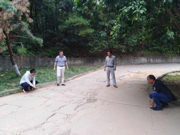 10月12日校基建处处长涂建平带领工程师,在生工公司党委书记廖明祥、副经理裴红的陪同下,亲临教务处楼前路段现场调研勘察并落实整改方案。