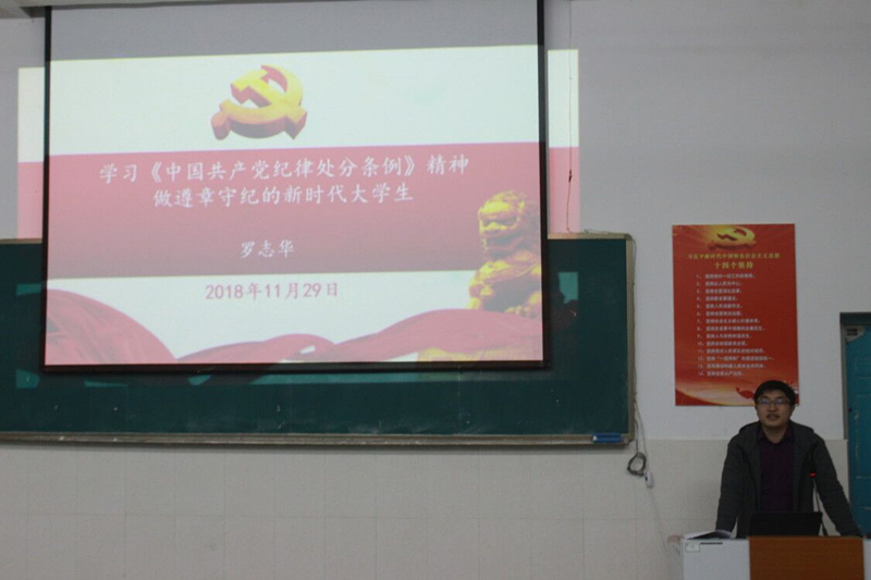公司老员工党建办于2018年11月29日晚,在院办二阶开展了一堂针对党员与入党积极分子的党课学习,公司党委副书记罗志华细致讲解了《中国共产党纪律处分条例》,教导每一名同学做遵章守纪的新时代老员工。