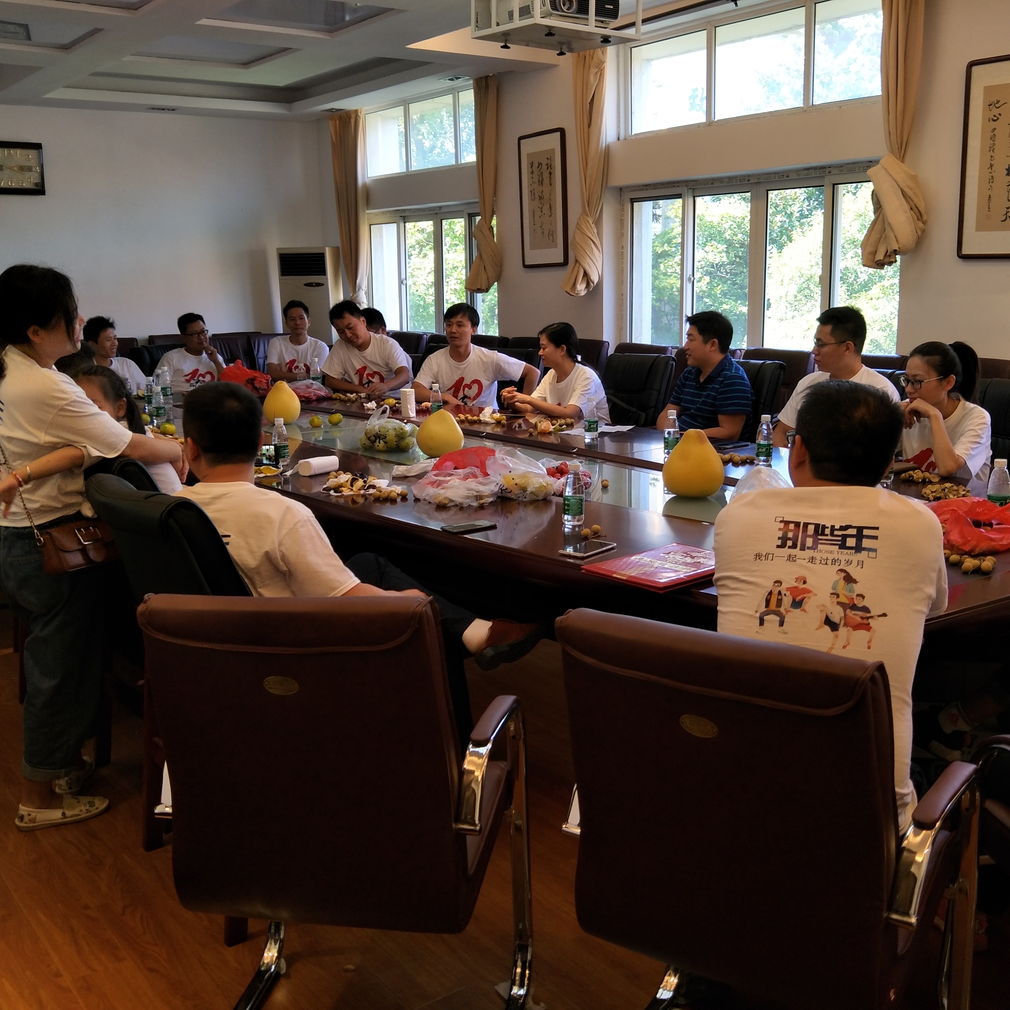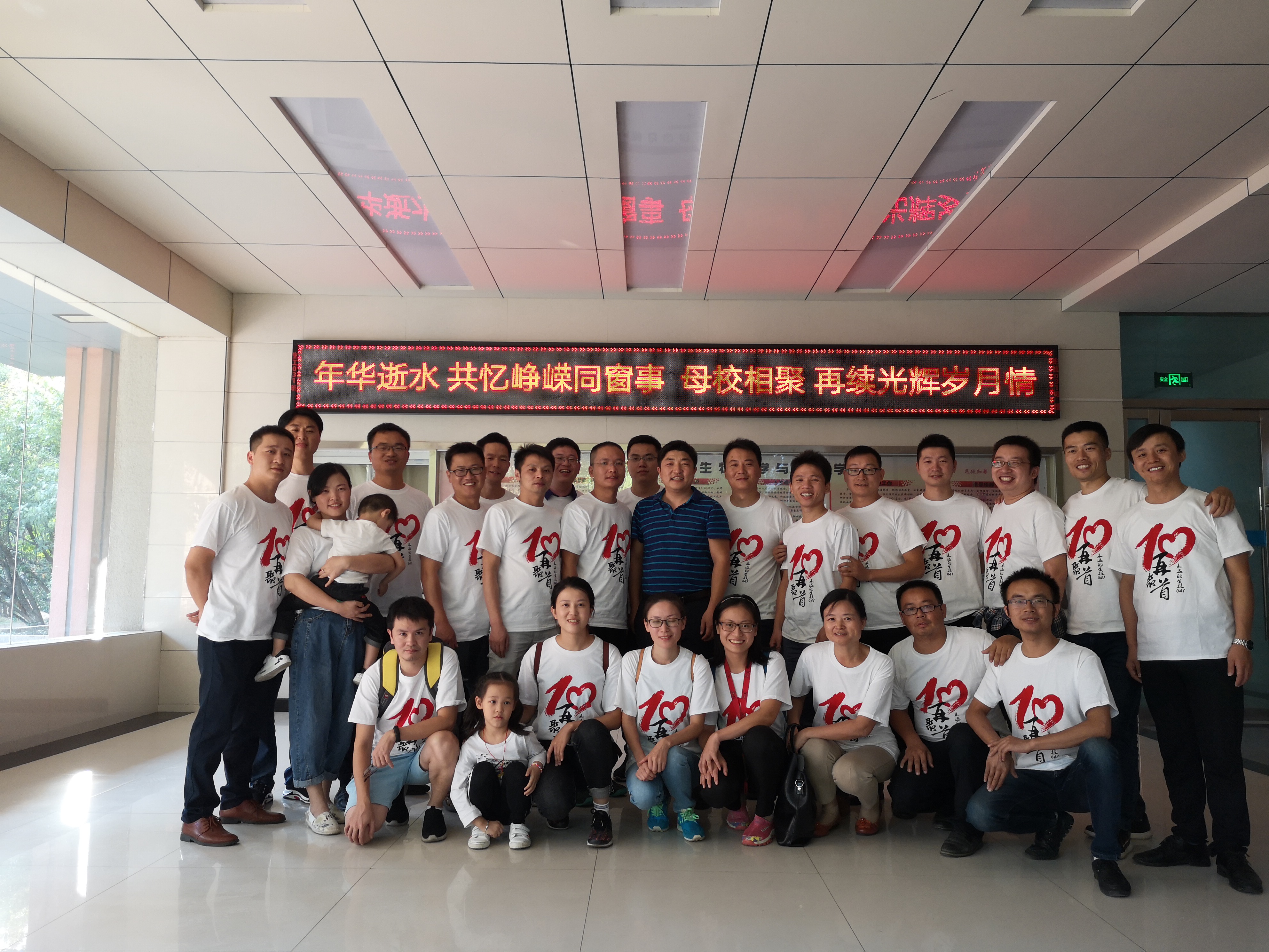 值此10月3日公司员工“返校日”之际,公司生技041班员工回校举办毕业十周年纪念活动。公司党委书记廖明祥、副书记罗志华及班主任魏赛金老师参加了有关员工接待、座谈活动。