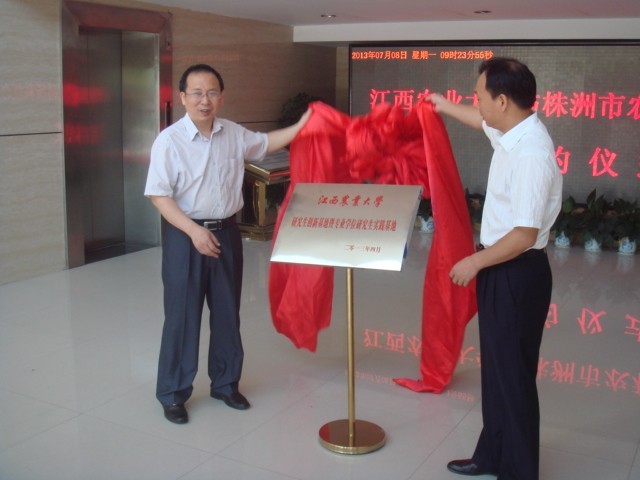 2013年7月7-8日,校研究生处处长曾志将与研究生处副处长彭齐东、生工院副经理霍光华、生工院副教授胡颂平等一行,赴湖南省株洲市农业科学研究所举行了公司第二个校级研究生创新基地暨专业学位研究生实践基地的挂牌签约活动。曾志将一行受到株洲市农科所主要党政领导漆本蛟、吴龙云、罗志勇等的热情接待,并邀请株洲市电视台对活动进行了报道。株洲市农业科学研究所是湖南省前三名的农业科研院所,在杂交水稻培育、红葡萄酒酿制、花卉组织培养、蔬菜水果开发、科技成果转化等方面具有国内领先优势,适合公司细胞生物学、生物工程等专业的研究生进行创新实践活动。公司与株洲市农科所有着广泛的合作空间。曾处长表示如果基地运行顺利,成果颇丰的话今后还可以升格为省级研究生实践基地。(生工院胡颂平供稿)