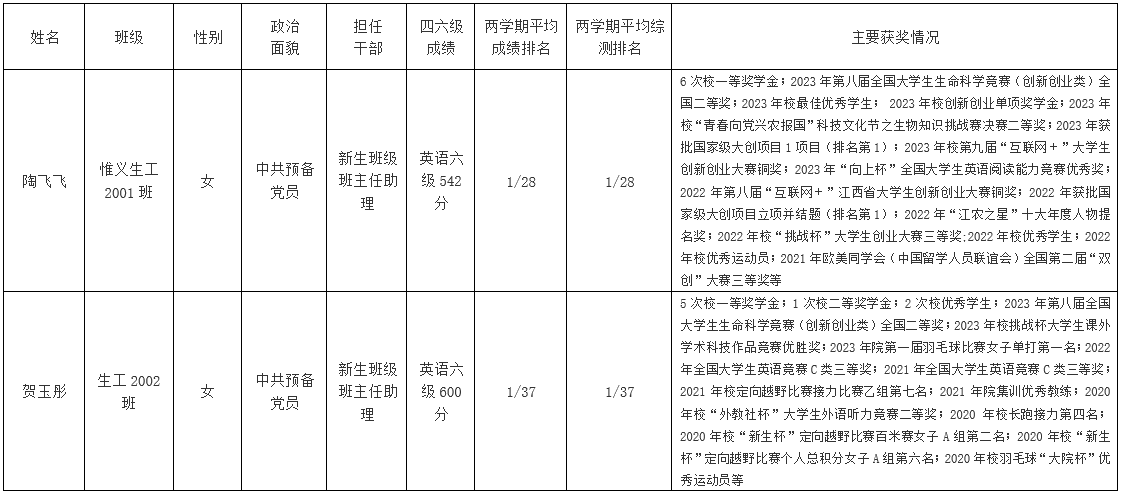 根据《关于做好2023年国家奖学金、国家励志奖学金评审及材料报送工作的通知》文件精神,结合《伟德bevictor中文版国家奖学金管理暂行办法》和公司推选本科生国家奖学金候选人办法(暂行),本着公平、公正、公开、择优的原则,经员工本人申请,公司资助工作领导小组评审,公司党政联席会议审定,拟推荐惟义生工2001班陶飞飞、生工2002班贺玉彤两位同学为公司2023年国家奖学金候选人。现公示如下:
