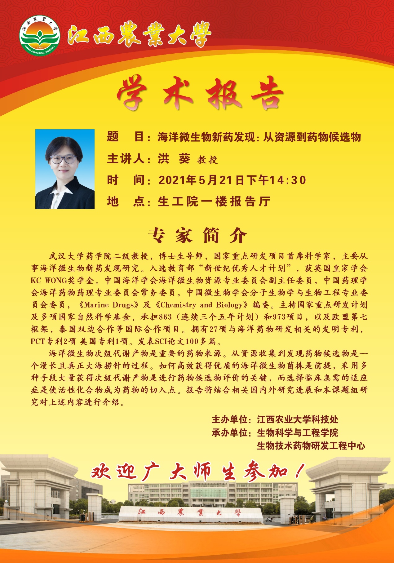 【学术报告】预告:海洋微生物新药发现:从资源到药物候选物