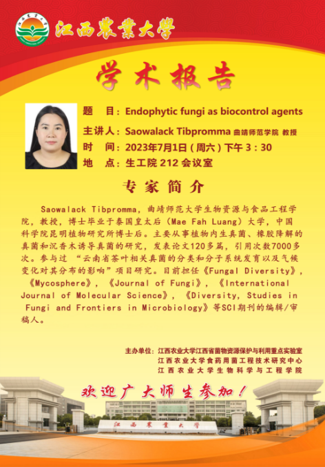 【学术报告】预告:Endophytic fungi as biocontrol agents